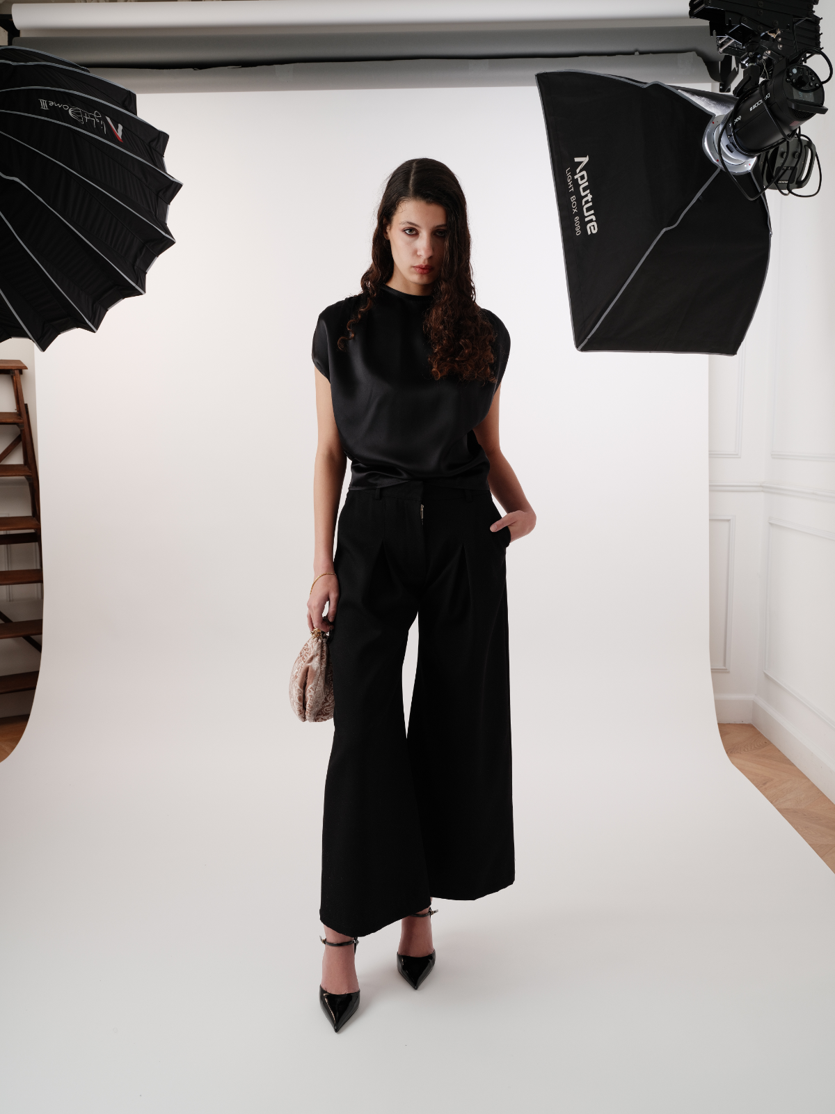 Constructed from high-density 100% wool twill, The Column is designed to anchor the wardrobe. These trousers sit at the mid waist, shifting the visual focus to the length and strength of the leg. The structure is defined by two sharp front folds that create a permanent vertical line.